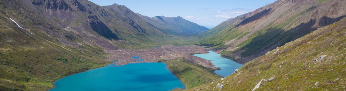 A beautiful hike to two stunning alpine lakes nestled in the Chugach Mountains, offering breathtaking views and serene surroundings.