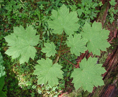 Unfortunately, there are a few bad guys out there that you need to be aware of on the trail. The most common one is Devil's Club. It's easy to spot as it looks like a shrub with over-sized maple leaves. The problem with this shrub is the underside of the leaf which contains tiny prickles. These prickles can cause severe inflammation when contact with the skin occurs.