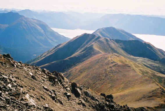 This is a really great hike! It was so cool to get aerial views of places that I've hiked at ground level: Turnagain Arm, Indian Valley, Ship Lake Valley, and Bird Creek. The scenery is incredible and stunning, but boy, you are really going to have to work to get at them. The first 3 miles are very tough. Up and up and up. You see a ridge and think you're almost there. Then you get to that ridge and there's another.