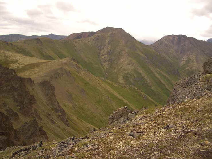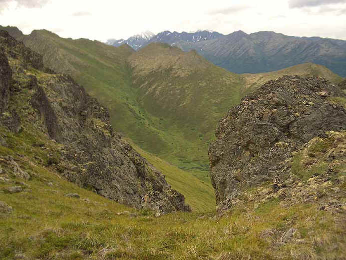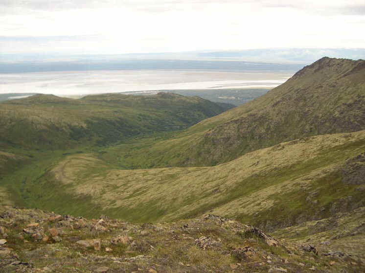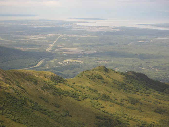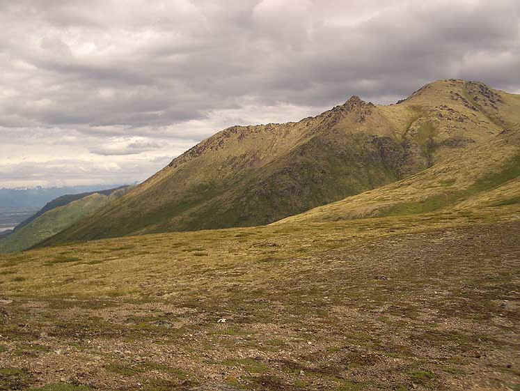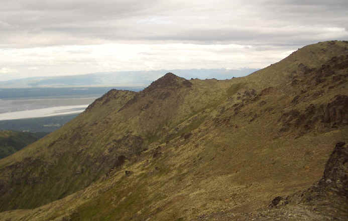 This was a relatively easy hike and I'm really glad I did it. Black Tail looks really intimidating from a distance but I was up by the rocks in no time. As you go up, The views are really spectacular and you can really see into the glacial valleys that comprise the Eagle River area. Besides that, you have great views of Knik Arm and if it had been sunny when I went, Denali and the Alaska Range, Sleeping Lady and Cook Inlet. When you get to the top, there are really great views of Mt. Magnificent and Round Top in the clefts of the big rocks on top.