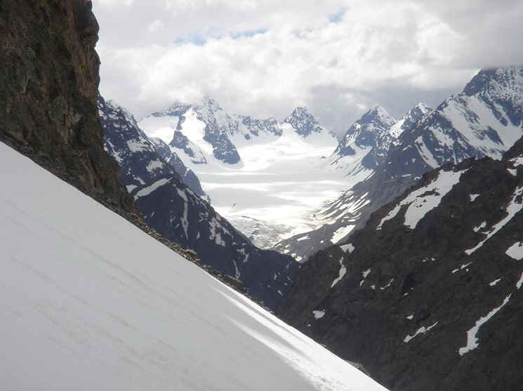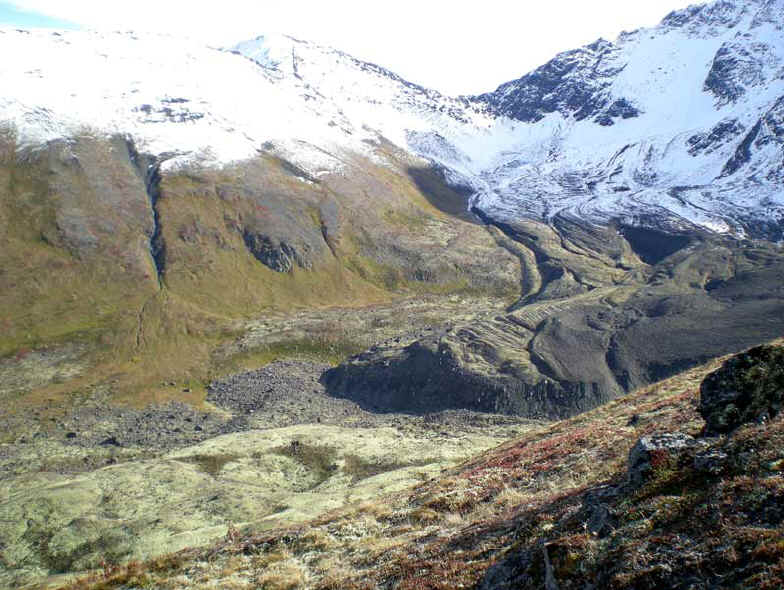 The trail is an old overgrown road most of the way up. You then get on the lower ridge and follow it towards the start of the valley. About 2/3 of the way there, the trail forks. Follow the left fork to go to the rubble strewn remnants of the previous glacier. Follow the right fork to get up the higher ridge and what I assume are the spectacular views. I heard from people who've done it that it's one of the best views in Chugach State Park.