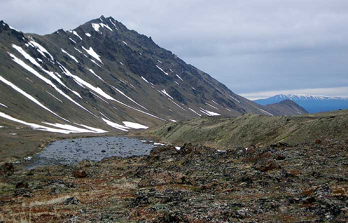 However, since I had to stay in the valley, it gave me a lot of time to walk around and it confirmed my analysis that this is a great spot in the Chugach to get away from the crowds. This was Memorial Day weekend and while I bet there were at least 10-20 tents in the Williwaw Valley, I was the only one in Canyon Creek. Yeah, it was a bitch hauling my pack over Near Point but it was over soon and a lot easier than going back up to the Ramp at Ship Lake. One thing that can get to you is the Alaska Mile, as it seems the lake is a lot closer till you get to that ridge that it must be just over and instead there is another expanse of tundra to get over.