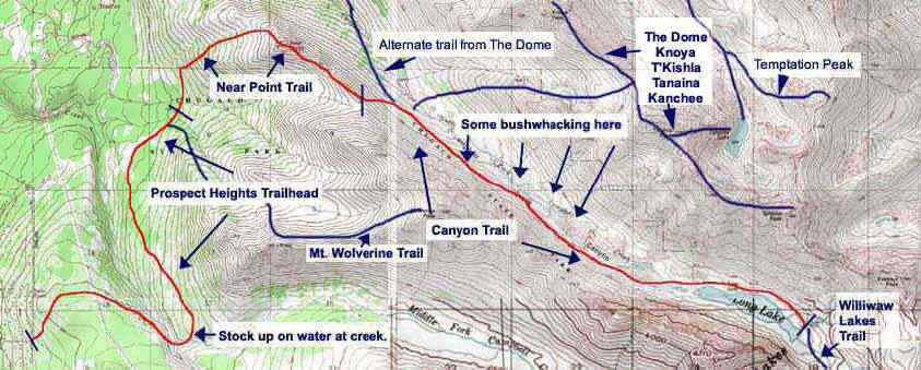 If you do the loop, I would recommend starting with Williwaw. The pass at the Long Lake side is very steep and rocky and you need to be careful. I would rather come down it then go up it. It will also be easier to go up this side of Near Point than the other side. Stay on the north side of the lake when traveling through.