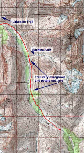 The next morning I headed out full of anticipation. My plan was to head to the lake with a nice break on the way to view Tulchina Falls. I would spend the next day exploring the valley above the lake, perhaps viewing glaciers. However, it didn't go as planned.