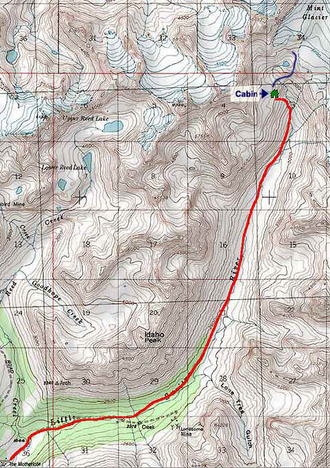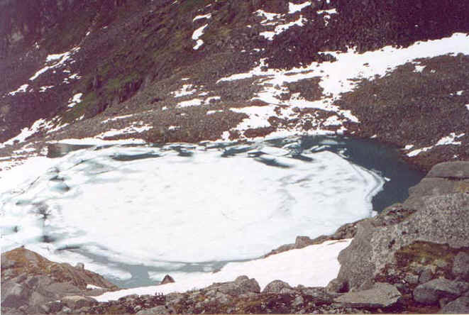 Be prepared for rain and cold. If it's raining you will get soaked bushwhacking through the willow if you aren't well protected. Added by the webmaster in 2009: I wrote this when I went in September, 2000. In June of 2009, it was very clear and not a problem. I'm not sure if this was due to trail work or just that the shrubs haven't had time to grow.