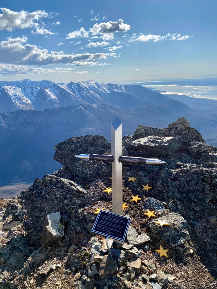 Gold Star Peak was dedicated in 2018 to honor the families who have lost a loved one while serving in the military. This mountain can easily be seen from the Matanuska-Susitna Veterans Memorial. For more about the history of the mountain visit the official Gold Star Peak website.