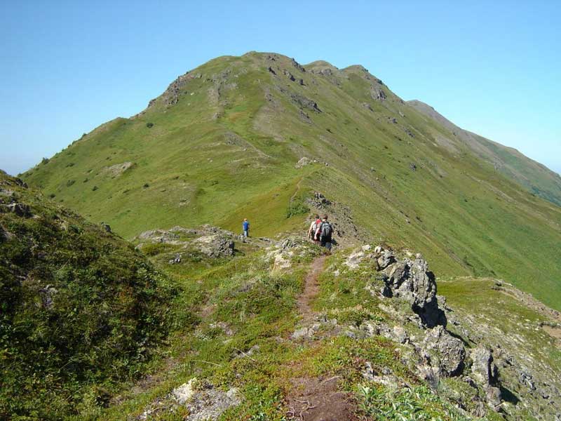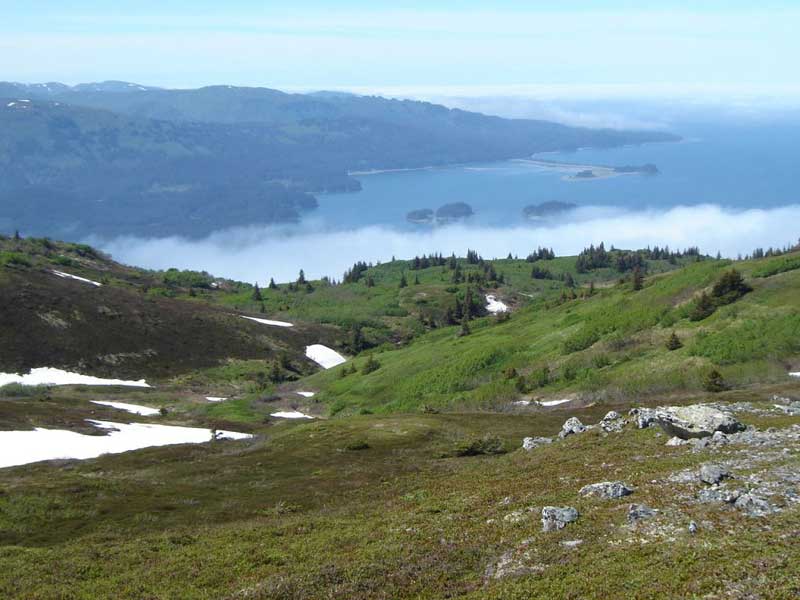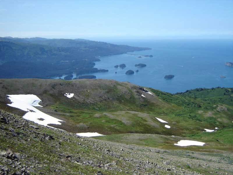 On a sunny or high-overcast day, this hike provides wonderful views of the mountains, glaciers, bays, fjords and islands in this area of Kachemak Bay State Park.