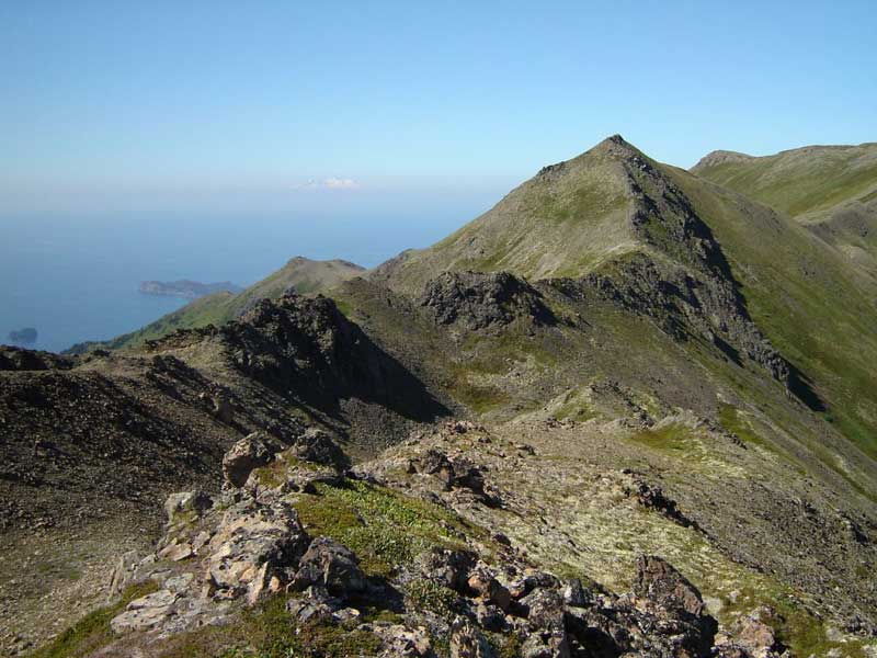 The trail starts at sea level, at a beach head known as Kayak Beach. The moderate trail through 3 miles of boreal rain forest climbs 1800 vertical feet to a knob above tree line. This location provides an awesome 360-degree view. People with little wilderness experience and/or moderate physical conditioning can get safely to this point. Most hikes end happily here. Continuing requires good physical condition and wilderness experience.