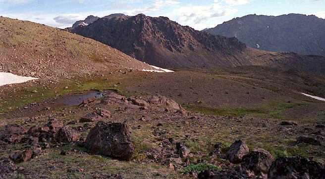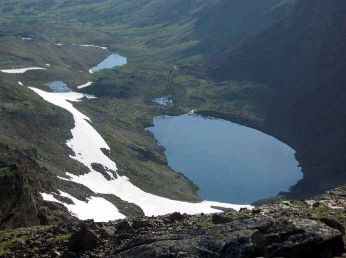 On the north side of the valley, near O'Malley Peak lie 2 tarns (the upper one being Hidden Lake) with a waterfall connecting the two. Also to the north is a rocky pond on top of a cliff with a stunning view.