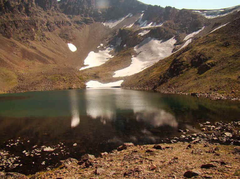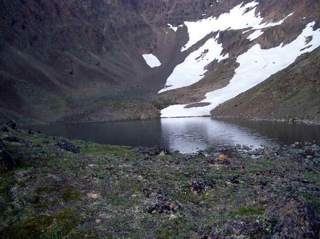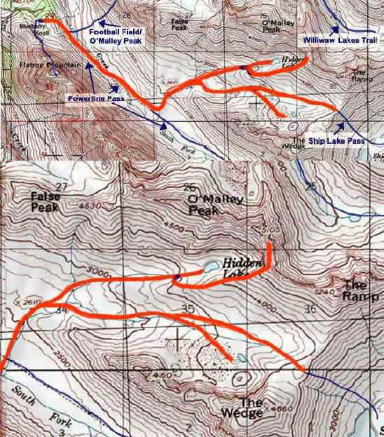 I used to just walk through here to get to Ship Lake but now I stay overnight and continue on the next morning. Most people camp out right in the flat part of the valley but I like the upper Hidden Lake which is ringed by a mountain so it seems a lot more cozier. Once I saw a wolverine (a very rare sight) run up the mountain.