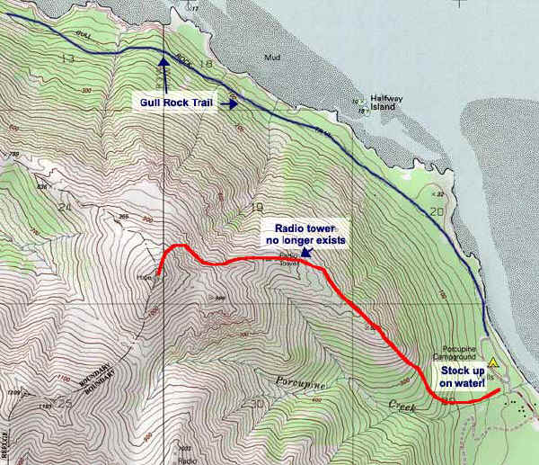 Bring enough water. There are no sources once you leave the creek. And remember, you'll be sweating.