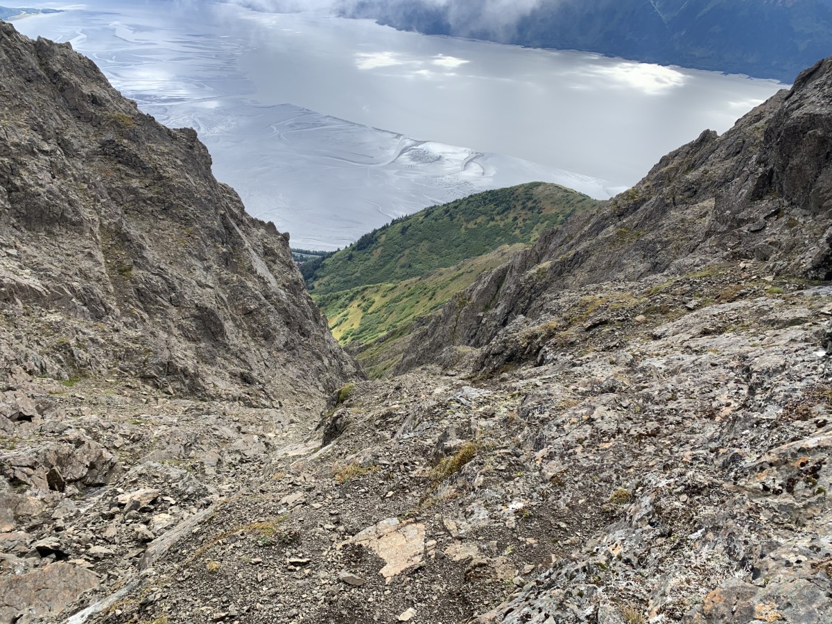 After passing through that notch, the summit is not much farther. Depending on the weather, the summit offers fantastic views of the Turnagain Arm and surrounding mountains. Take some time to enjoy the views before starting your descent.