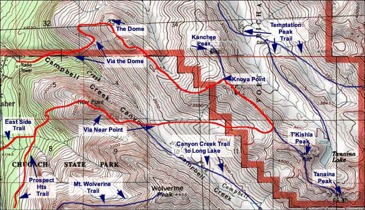 Once you pass Campbell Creek, there is absolutely no water anywhere unless early in the season and snow is still on the ground. After the Dome, there is a mostly dry tarn that has a few puddles for your dog to save on your supply. If you plan on being up there all day, better bring extra rations.