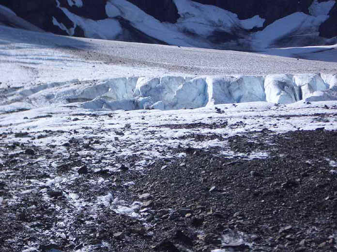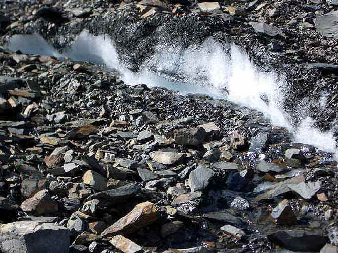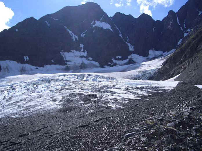 The 3 glaciers are definitely receding and will probably be gone within the next decade. They are quite small but very interesting as half of the ice is underneath broken rock and scree. There was much meltwater coming off of them. The leftover moraines are quite impressive and there is a small muddy tarn in between them. Conceivably, you can hike to the other 2 glaciers but it commands caution and the sights wouldn’t be any different than the easily more traversable 1st glacier. Check out where the meltwater flows into the main stream that goes into Lost Lake, as it is quite a contrast with the non-silty water flowing from the tarn (see photos).