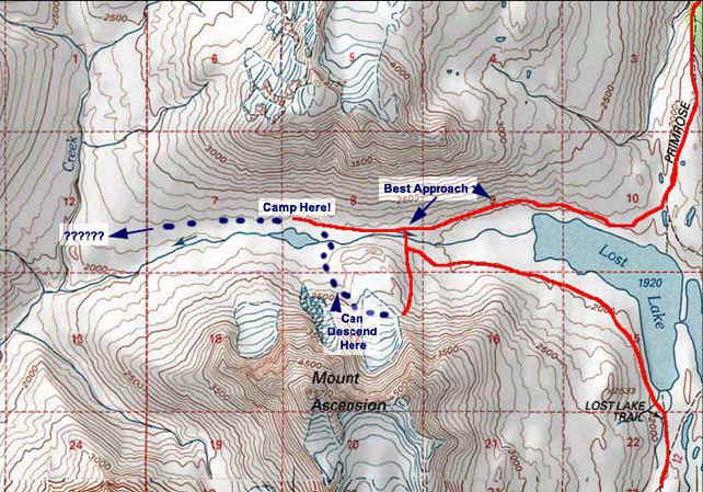 The best way to get into this area is to come in from the North side of Lost Lake. Most of the time, there will be a small trail. Once past the willow, either head to the tarn and set up camp, or officially start your hike to the glacier by fording the stream at the best opportunity.