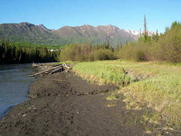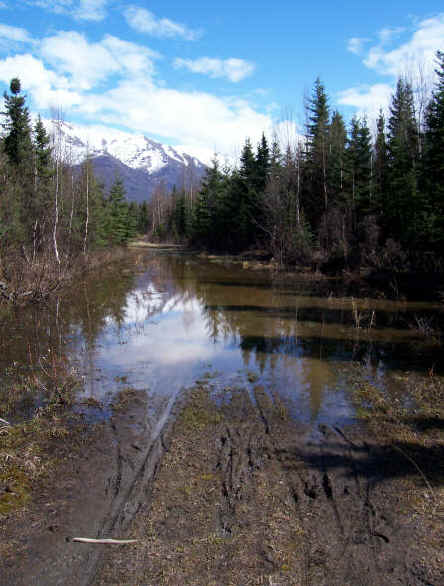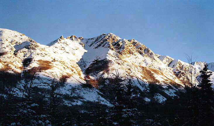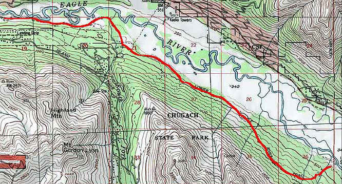 Just as the city of Anchorage has it's system of greenbelt trails, so does Eagle River, a small town just up the road on the Glenn Highway. For the first couple of miles, the trail stays near the river then follows along the lower ridge lines of the mountain. Most of the trail is among spruce and aspen with intermittent views of the mountains and the river.