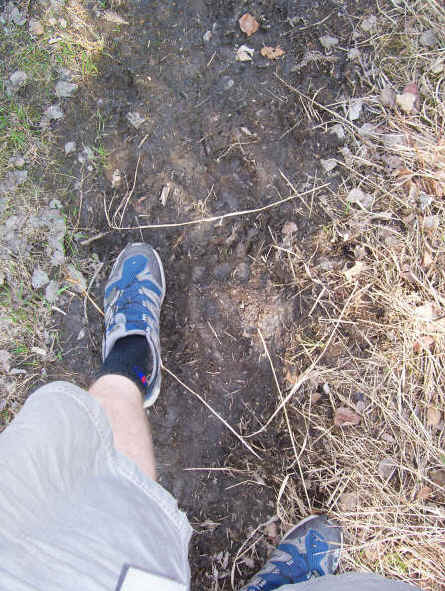 About 2.5 miles in, the navigation can be a little bit confusing. The trail intersects with another and I believe you have to ford a small creek to continue on. At this point I'm not sure due to snow on the ground. I plan on checking out the trail for biking so I'll have more information then. However, it would be impossible to get lost if you took the wrong trail since you are funneled between the river and the mountain.