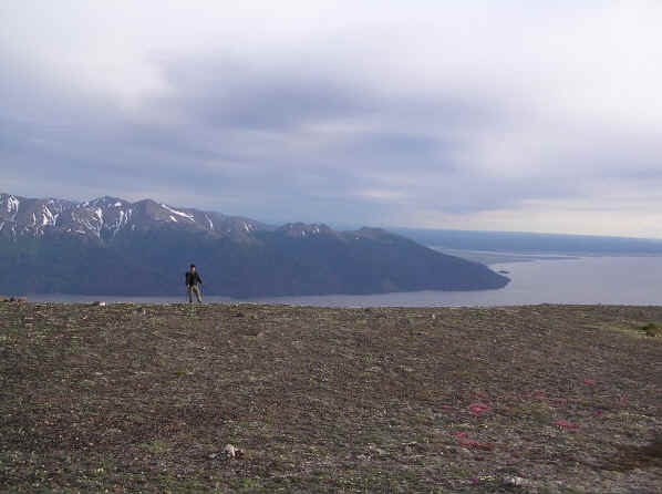 I hiked McHugh Peak, for the second time in four years, on an evening in early August 2004. Nice weather. No wind except at the very top. However, the weather is unpredictable here. Technically this is a side trip from the already submitted Rabbit Lake Trail from McHugh Park along Turnagain Arm, a few minutes from the Anchorage suburbs. As that trip describes, the first few turns are confusing, and making matters worst, there are vandalized signs as well. Read that trail description for more info.