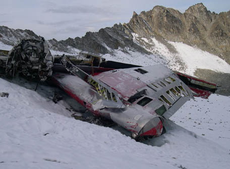 Head across the valley and gain access to the Bomber Glacier. The bomber itself will be off to the left and is an interesting side trip. Bomber Pass (5330'), your actual destination, is more or less straight ahead, maybe a little off to the right. It is the low spot along the ridge marking the head of the valley. It can be a little tricky, especially if the ground is frozen (in which case crampons are advisable). Once atop, it is a bit of bouldering downhill into the valley with the Reed Lakes. You'll see Upper Reed Lake, aim for the right-hand shoreline. There is a light trail along the lake's edge. From here, it is a straightforward, 8-mile hike out to the parking lot where hopefully your car is not on cinder blocks with the engine missing.