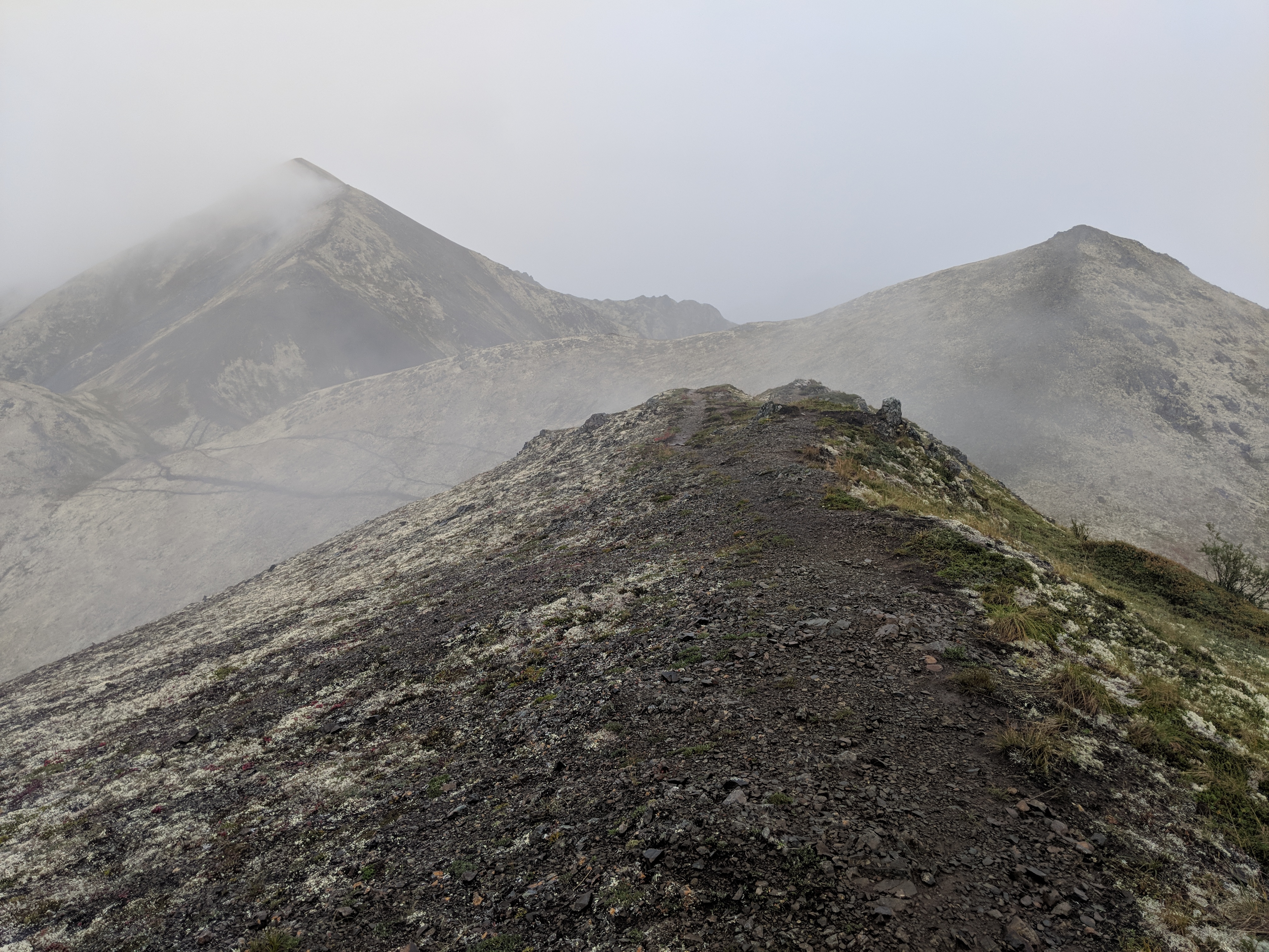 The trailhead to this route provides access to Bear Mountain and Mt. Eklutna. You can either climb up and over Bear Mountain and then continue to Mt. Eklutna, or head straight to Mt. Eklutna via the Peter's Creek Trail. That trail leads along an old roadbed that can be steep and muddy in sections, then follow it up to the left until you reach the saddle. Mt. Eklutna is the mountain up to the right.