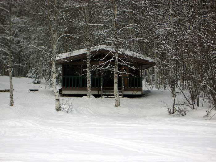 This weekend I stayed at the James Lake Cabin. This is one of nicest ones in the state and gives you the most solitude in the Nancy Lake area. Except for one snowmobiler early in the day, I never saw anyone else. It's six miles in but I had no problems getting there. You have to cross 9 lakes (including James) but the orange portage signs were easy to find.
