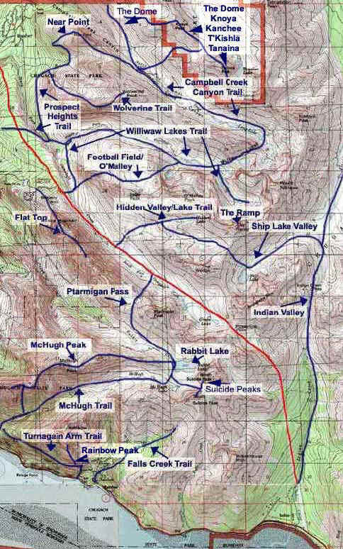 The section of the trail between the Pass and midway to Indian Valley can be quite clogged with snow even into June. Be very careful at the Pass if there is a lot of snow as there is quite a drop if you slip and slide down.