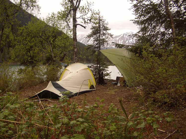 Once you start hiking along the lake, you're committed: there are no good sites until you get to the end where there is a nice sandy flat area to set up your tent. Ford the narrow but deep creek to get to the area.
