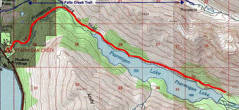 A nice "no hassle" hike along a beautiful aquamarine lake. I like to do this trail early in the season when I'm dealing with some stress and I just want to get "out there". Views include two small glaciers on the mountain on the north side of the lake. The trail starts at the Ptarmigan Creek Campground and can be traveled as a day hike if so inclined. This is a perfect trip for beginning backpackers or people with children. It also makes a nice preseason hike.