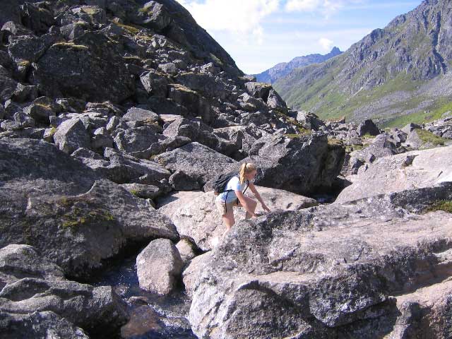 The first part of the hike is very easy (flat, wide trail), then after a couple of miles or so it goes up pretty steeply (there are switchbacks). Next you have "the boulder scramble". It is a filled with healthy sized boulders that you have to navigate. Not too hard, but not recommended for dogs or kids. Then, after a brief period of flatness, it climbs once more and you see Lower Reed Lake for the first time. There are more campsites here than Upper Reed Lake, but if you're feeling motivated, it's worth the climb.
