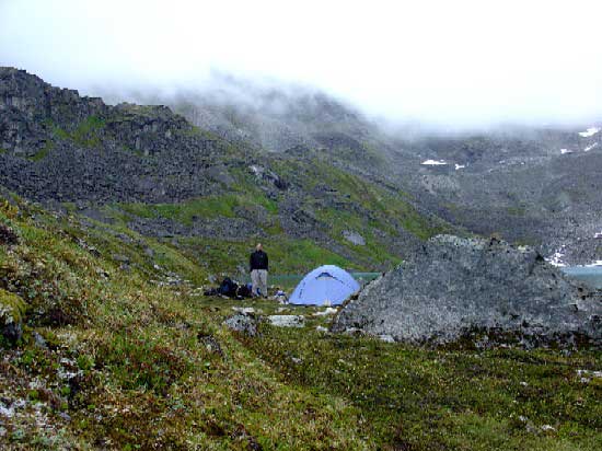 Once you reach Upper Reed Lake there is only one place that we found that is suitable for a tent. Follow the shoreline to see what I mean.