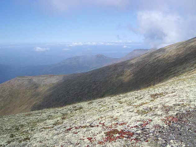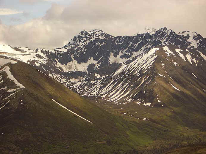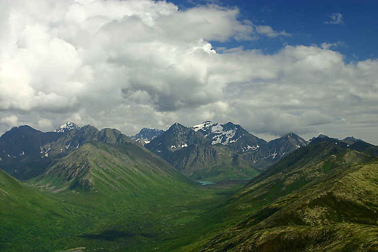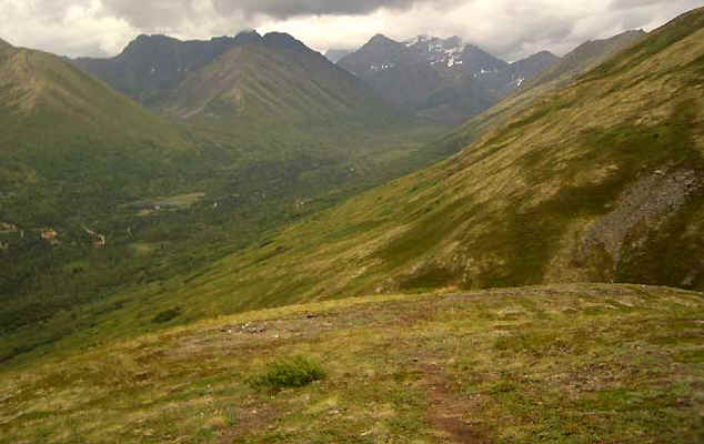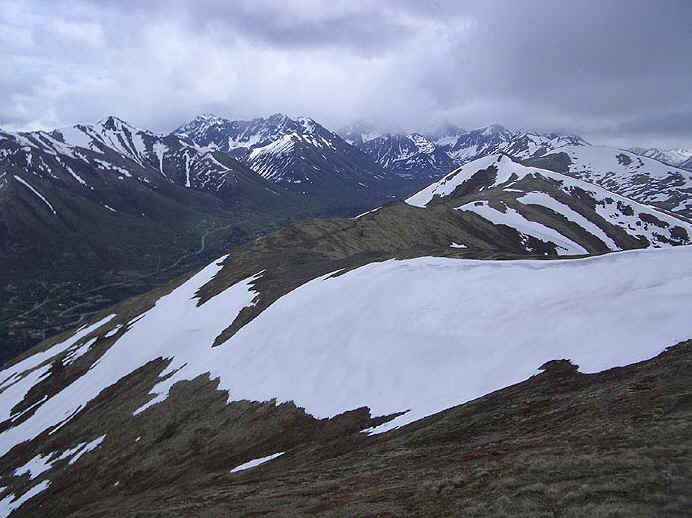 From the Eagle River side: this is a great cardio workout for people who live in Eagle River. As you head up to the saddle, there are great views of the South Fork Valley with distant glimpses of Eagle and Symphony Lakes. If you want to make it a quick and easy hike, continue across the saddle for pretty decent views of Arctic Valley and Anchorage. If you have the time and the endurance, take the trail on the right and head up to the ridge line and continue until you reach the peak. To get to the actual ridge can be a little tough in places but just make it to the ridge and the rest is easy. On a really clear day you should be able to see Sleeping Lady and the Alaska Range but I've yet to confirm this on the two cloudy days I've gone. Theoretically, you could continue right to Alpenglow into Arctic Valley but for me, the logistics of two cars wouldn't be worth it.