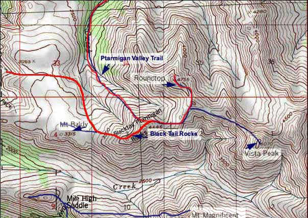 I hiked/snowshoed this trail with the Anchorage Adventurers Meetup Group in March 2008. The snow condition is great. You can access the peak from the Ptarmigan Valley Trailhead. The first 4 miles is wide and well packed. Skiing should be great on this trail. The trail leads steady uphill towards a bowl where you can see Mt. Baldy, Black Tail Rock and other peaks. Round Top Peak is to the left of the bowl. There is no obvious trail to the peak. Just climb up and walk along the ridge about 1.5 miles. The total elevation gain is about 4,500 feet. It is a beautiful trail, and great workout, well worth it. I have to say that I did not make it to the top of the peak but some other people made it.