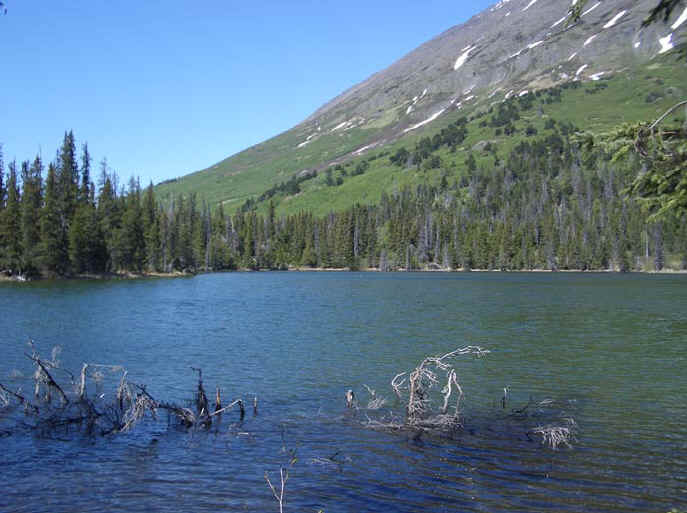 The other side of Upper Russian Lake, heading towards the Cooper Landing Trailhead has some really nice mountain views as well as some interesting wetlands and ponds.