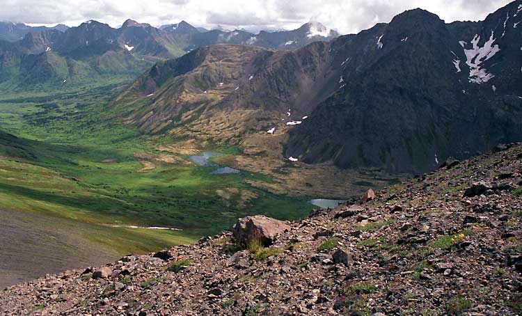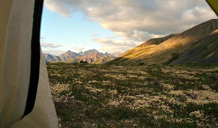 Then explore, explore, explore! After dinner, I like to take a hike around the lake. The rock slide shelters rock ptarmigan and at the upper part of the bowl can usually be found a herd of dall sheep as well as an incredible view of the entire valley. If it's a wet season, you can camp up there and use the small creek (which usually dries out toward the end of the season). Look very carefully and you can get a glimpse of the last remnants of the glacier.