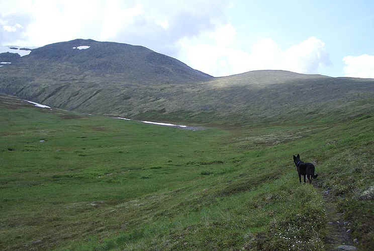 Last weekend, I camped near that hidden Tarn. Due to our slowly arriving summer this year, it was still 1/2 frozen with lots of snow patches in the valley's. I camped on a knoll and had a stunning view of the entire 2nd valley. I had meant to day hike on the other side but when I set up camp, I was more in a mood to just read and relax.