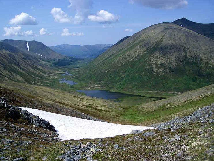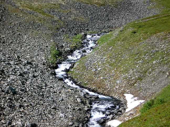 The ranger, and other sources, tells me it’s real easy to miss the trail if you’re coming from the south on Resurrection Pass. My picture on the photos page from the saddle overlooking the Pass may help orient you. After you descend the moraine into the second valley, you’ll will be crossing the creek and hiking on the other side. A section of snow was covering this area and I didn’t notice it right away.